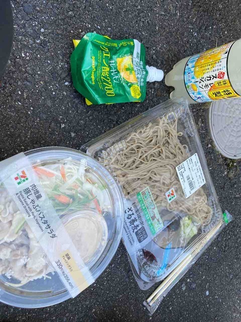 蕎麦を食べ、カロリーメイトやゼリーなどを補給食として購入。