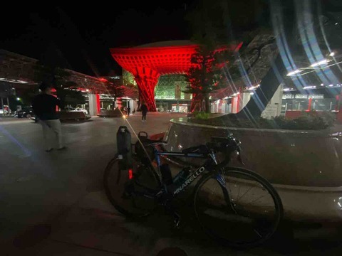 サイコンフリーズするなど色々あったが、無事日付変更前に鼓門に到着する目標は達成。