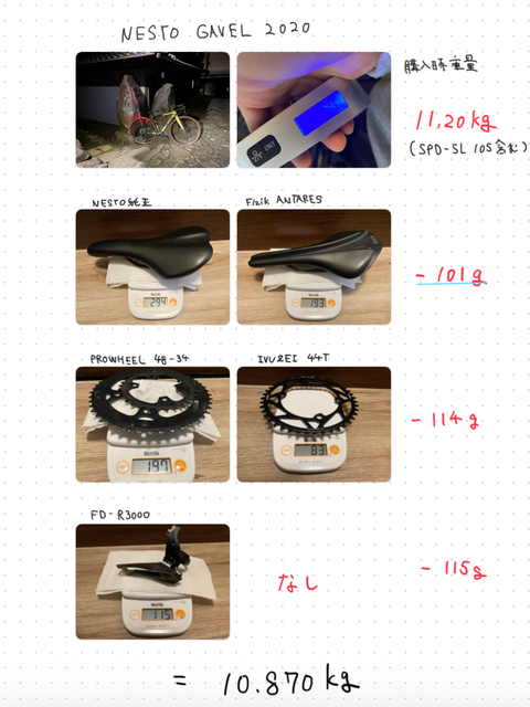 現在 10.87kg まで軽量化できた(装備品なし)。