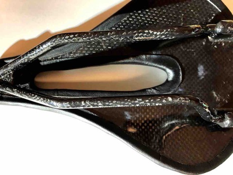 まず質感。明らかに今回購入したカーボンサドルは見た目が安っぽいです。